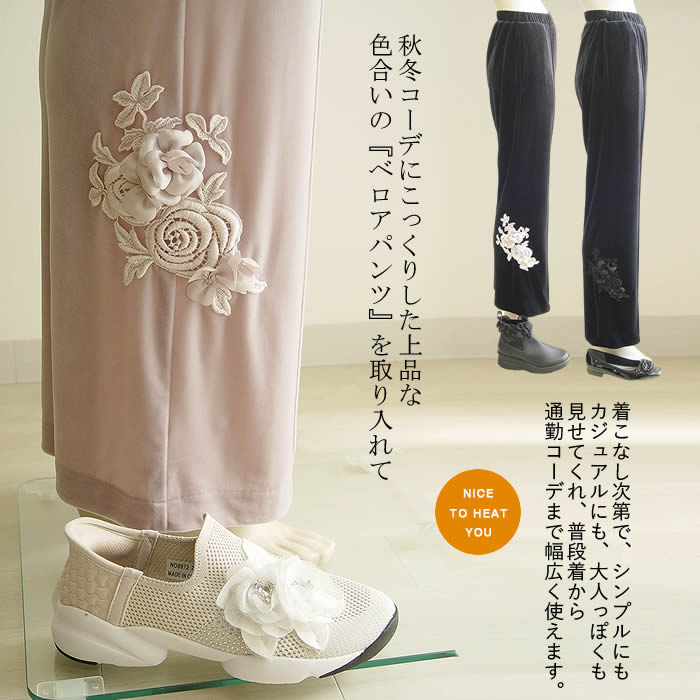 【ベルパーチ】お花&レース裏起毛ストレッチパンツ¥18,700(税込み)黒 上記商品について問い合わせ