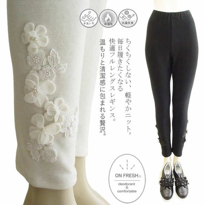 【ベルパーチ】お花&レースオンフレッシュレギンス