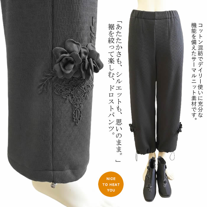 【ベルパーチ】バラ&レースダンボールニットワイドパンツ ¥20,900(税込み)グレー・黒 上記商品について問い合わせ