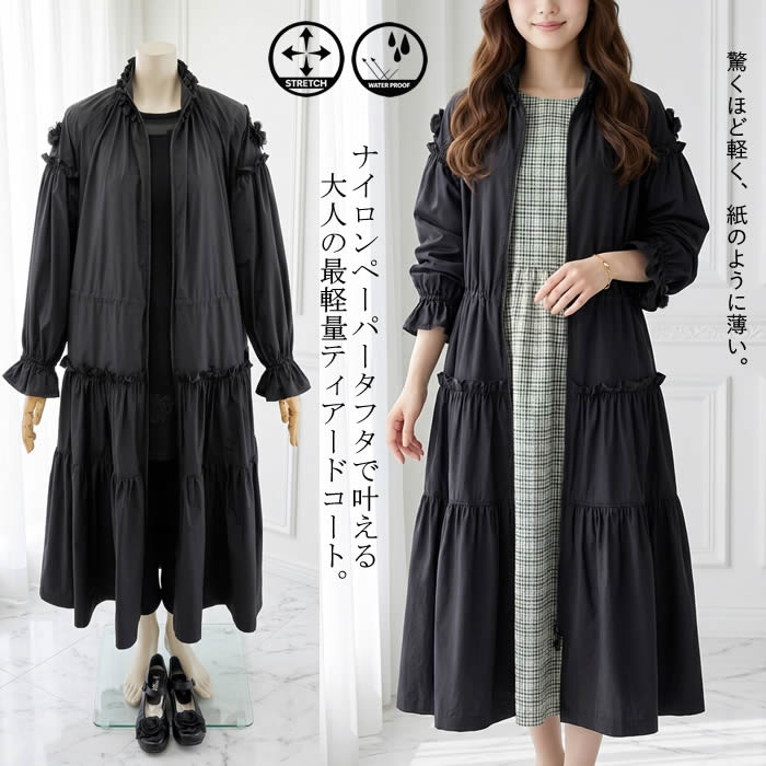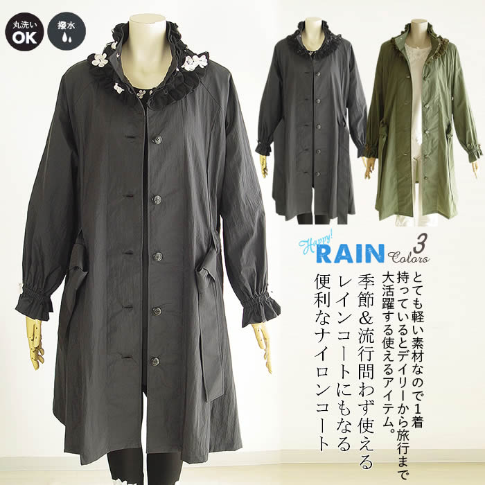 【ベルパーチ】お花フリルナイロンハーフコート¥31,900(税込み) 黒・ベージュ・カーキ 上記商品について問い合わせ |