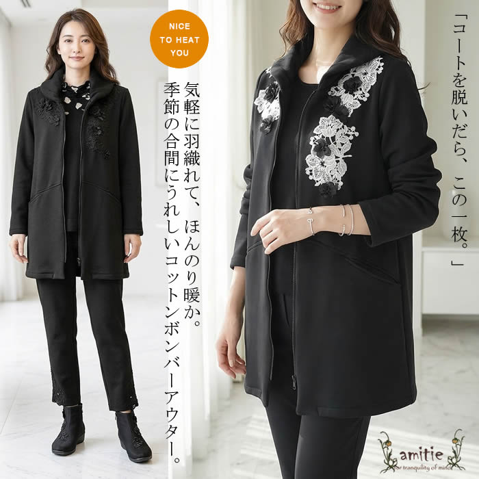 【当店限定デザイン】【アミティエ】お花&レースコットンボンバージャケット