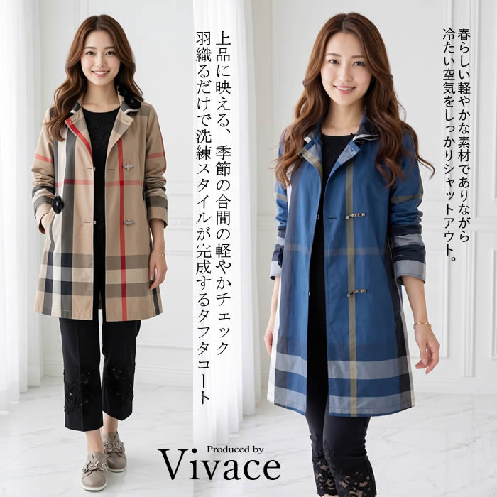【ベルパーチ】チェック花ライナー付コート¥50,600(税込み)紺・カーキブラウンン この商品について問い合わせ