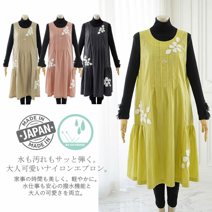 【ベルパーチ】お花裏フリースナイロンエプロン¥25,300(税込み) ピンク・黒・ベージュ・イエローグリーン 上記商品について問い合わせ