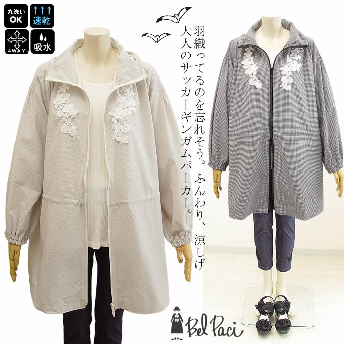 【ベルパーチ】レース花サッカーギンガムストレッチパーカー